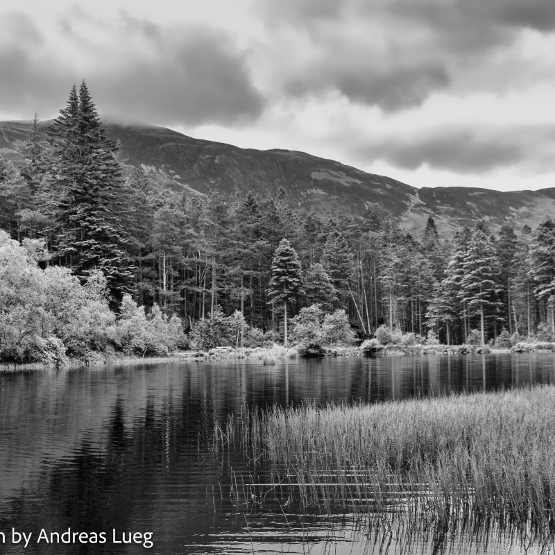 Glencoe Lochan, ein malerischee See in der Nähe von Glencoe Village in den schottischen Highlands. Glencoe Valley mit den "'Three Sisters" im HintergrundLoch Tummel Tanzania 2018