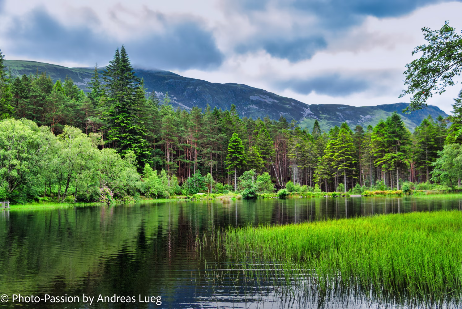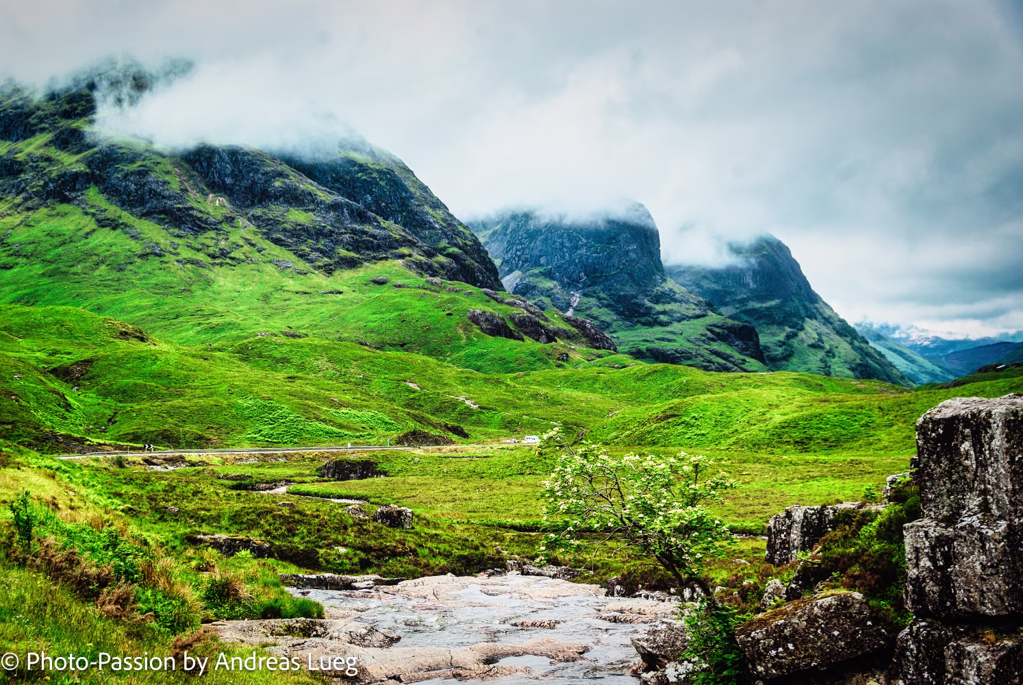Glencoe Lochan, ein malerischee See in der Nähe von Glencoe Village in den schottischen Highlands. Glencoe Valley mit den "'Three Sisters" im HintergrundLoch Tummel Tanzania 2018